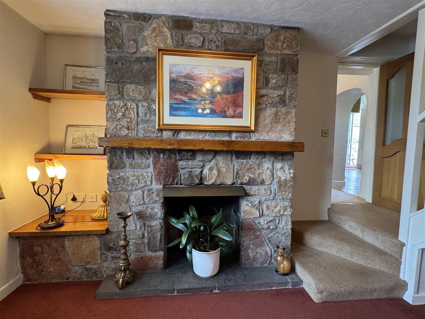 Exposed natural stone chimney breast with open fire and wooden lintel. Two panelled radiators. UPVC double glazed window to front elevation. Stairs to first floor landing. Door to Entrance porch. Study.