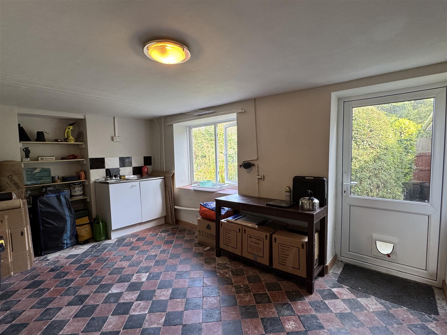 Single drainer stainless steel sink set over base unit. Recessed shelving. Quarry tiled floor. Panelled radiator. UPVC double glazed window to rear elevation. UPVC double glazed and panelled door to rear garden.
