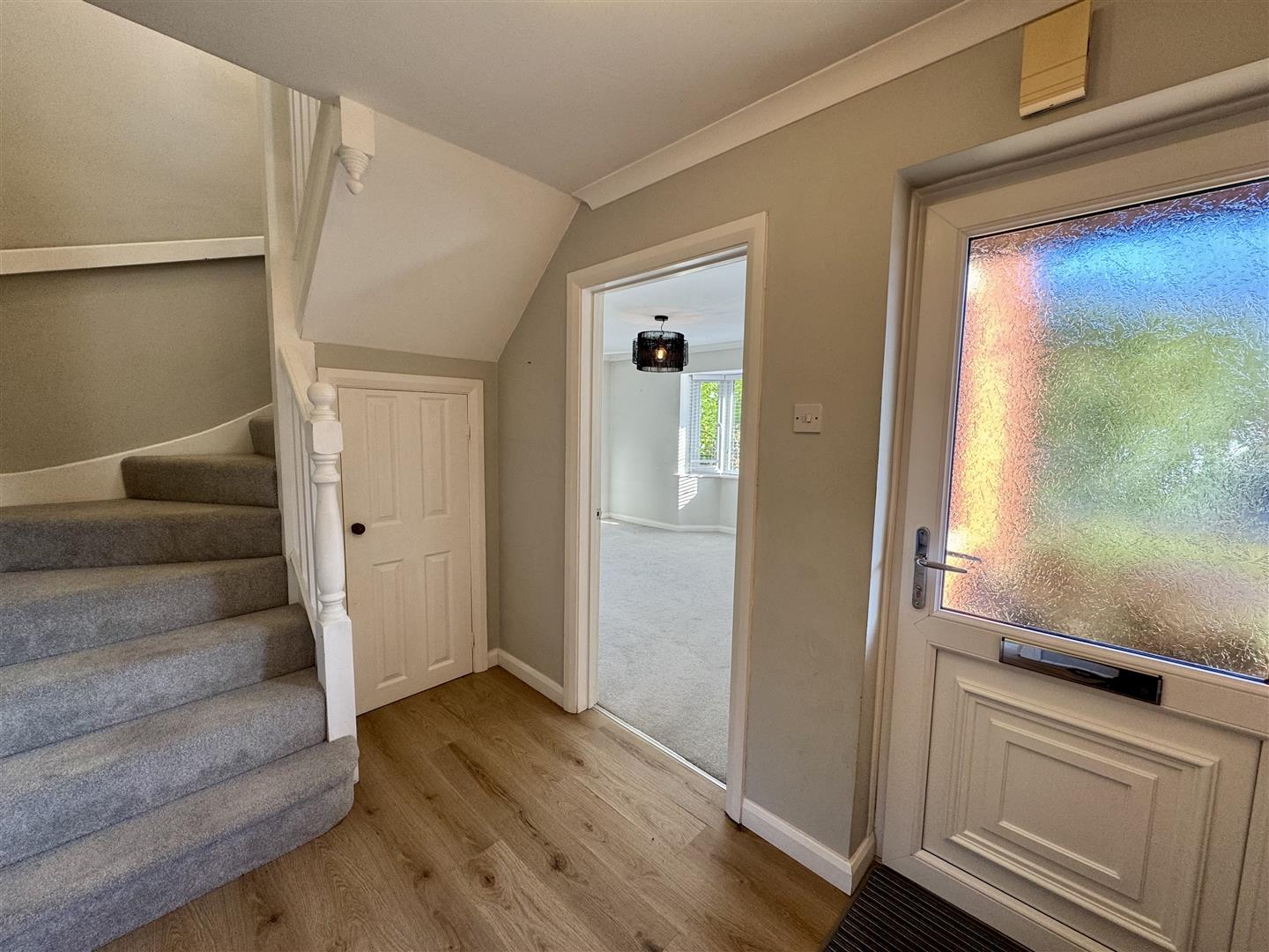Approached via a UPVC double glazed and panelled door. Coved and plain ceiling. Under stairs storage cupboard. Wood effect flooring. Panelled radiator. Turn stairs to first floor landing. Doors off.