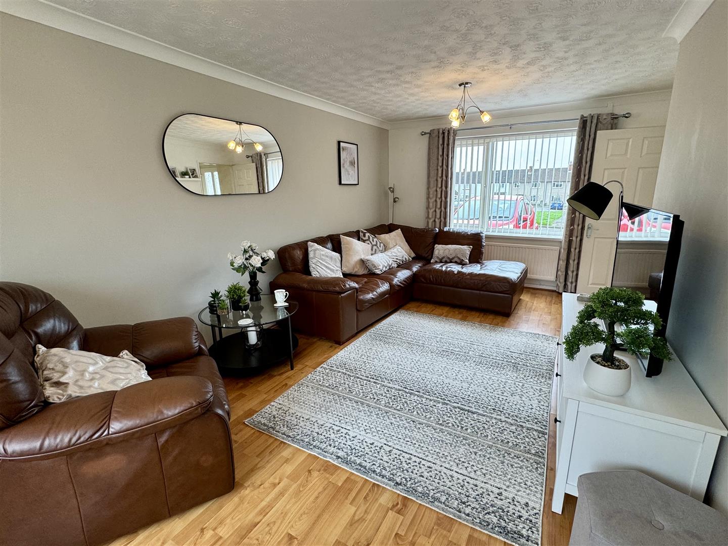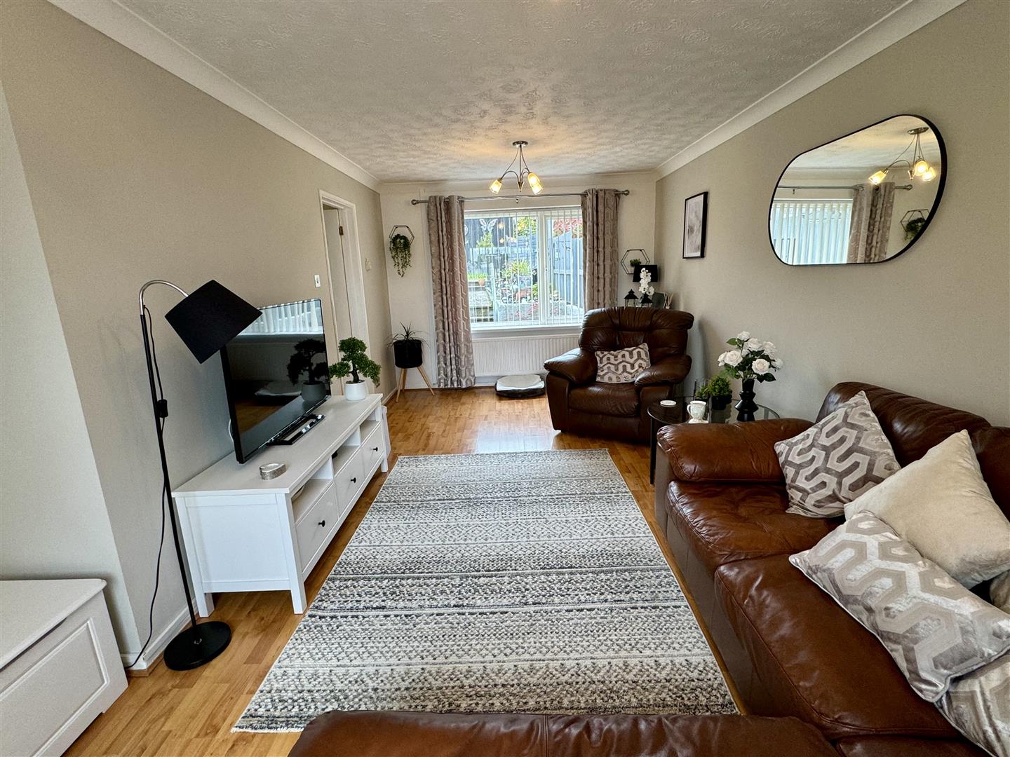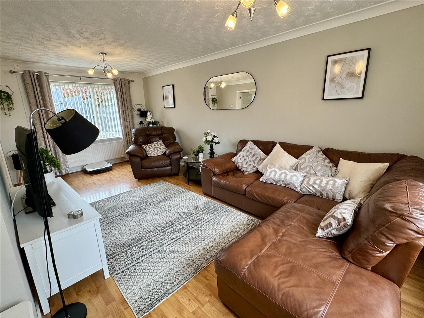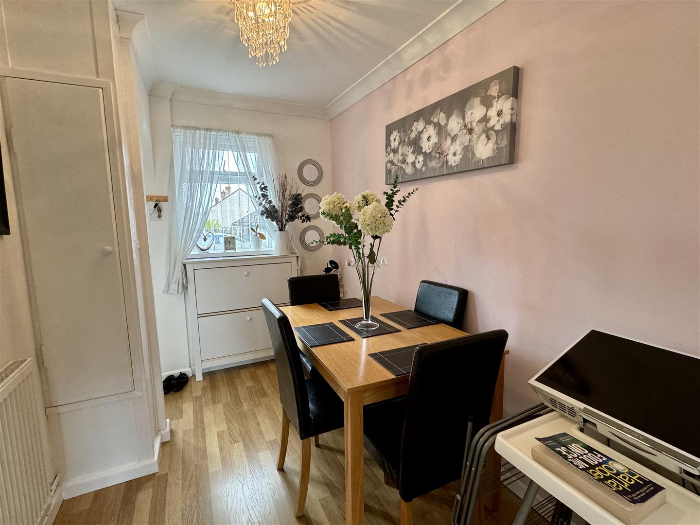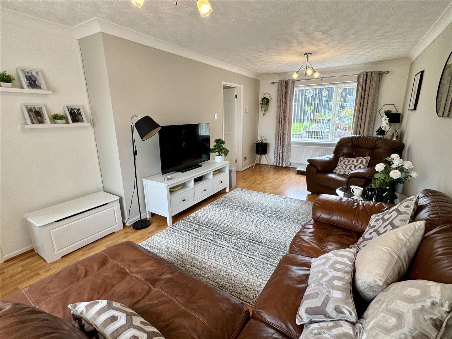 Coving. Wood effect flooring. Understairs storage cupboard. Panelled radiator. UPVC double glazed window to front elevation. Door to kitchen/breakfast room.