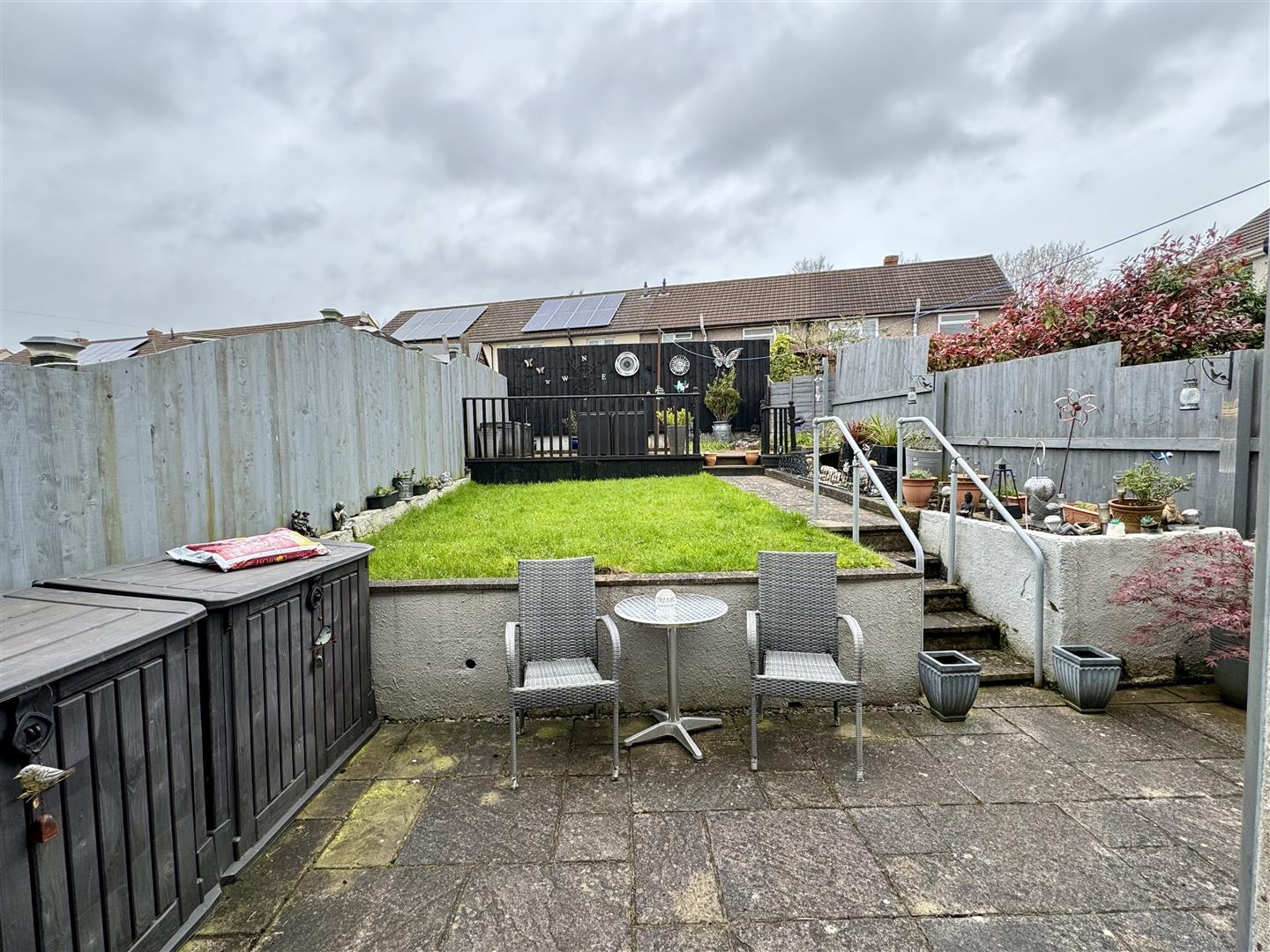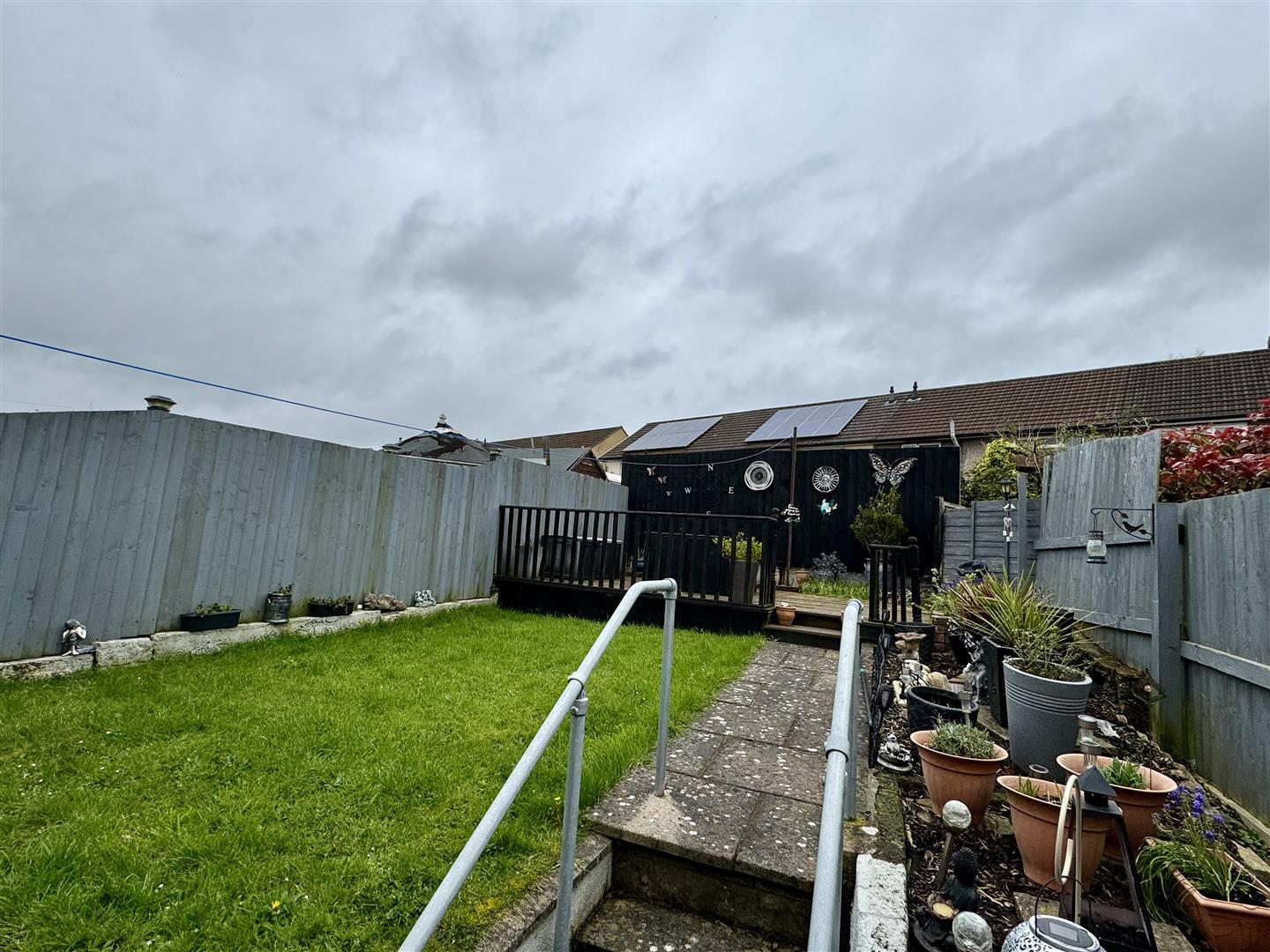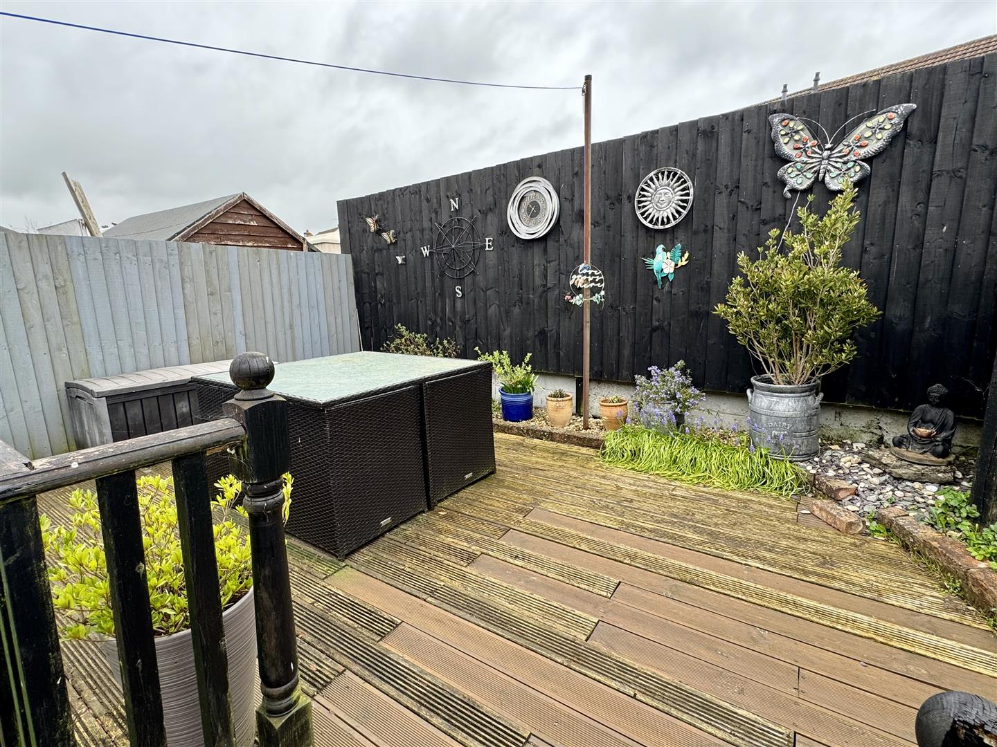 Situated to the rear of the property, there is a full width sun terrace with steps up to well maintained level lawn area. Well stocked border. Further decked seating area. Outside tap. Fence to boundary.