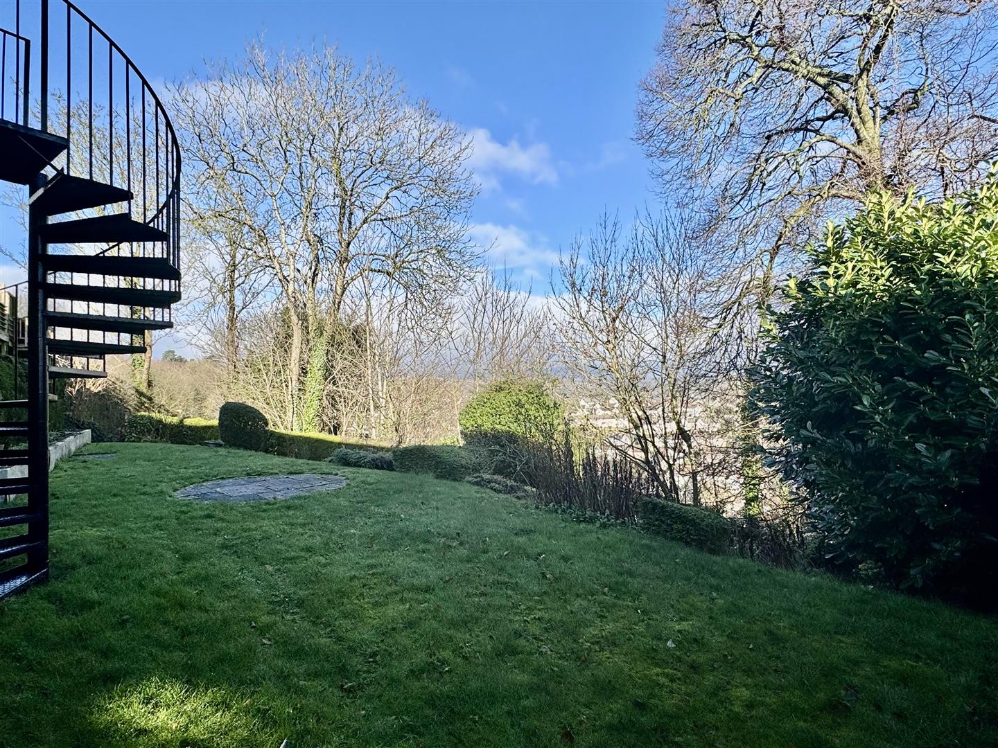 - BALCONY WITH VIEWS AND SPIRAL STAIRCASE LEADING TO THE GARDEN
