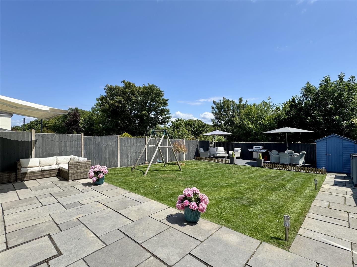 Predominantly to the rear of the property the gardens have been attractively landscaped and are of a sunny nature. There is a full width flagstone sun terrace, large well maintained lawn and decked seating are to the rear of the garden plus garden shed to remain. Fence to boundary.