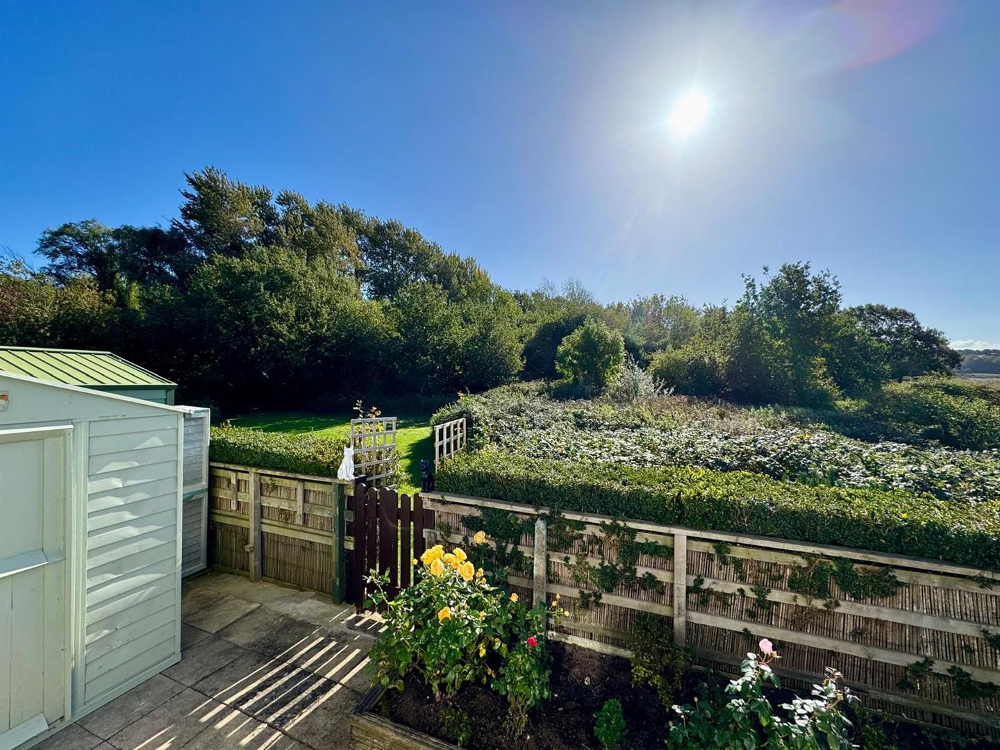 Attractive, low-maintenance garden featuring gravel borders and a variety of mature trees and shrubs. A decked area at the rear includes a raised flower bed, with a side access gate. The garden enjoys scenic views of the River Wye, towards the Severn Bridge and beyond.