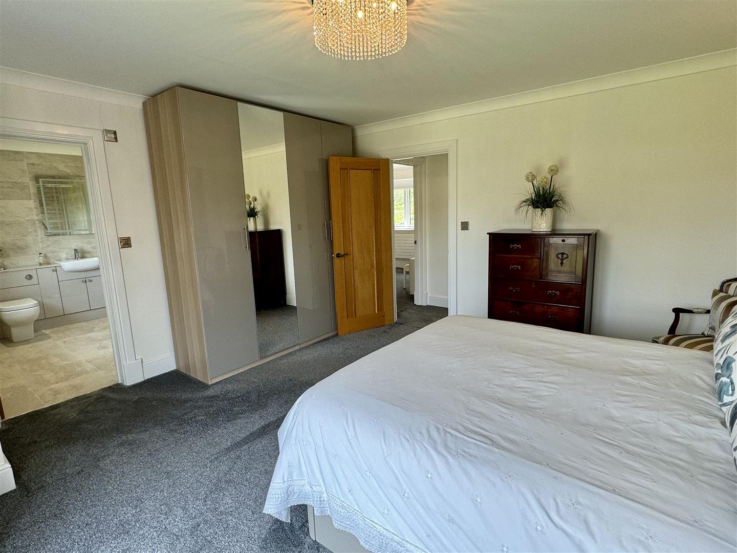 On the first floor, you'll find the primary bedroom with a luxurious en-suite shower room, a second guest bedroom with an en-suite shower room, two more bedrooms, and a stylish family bathroom.