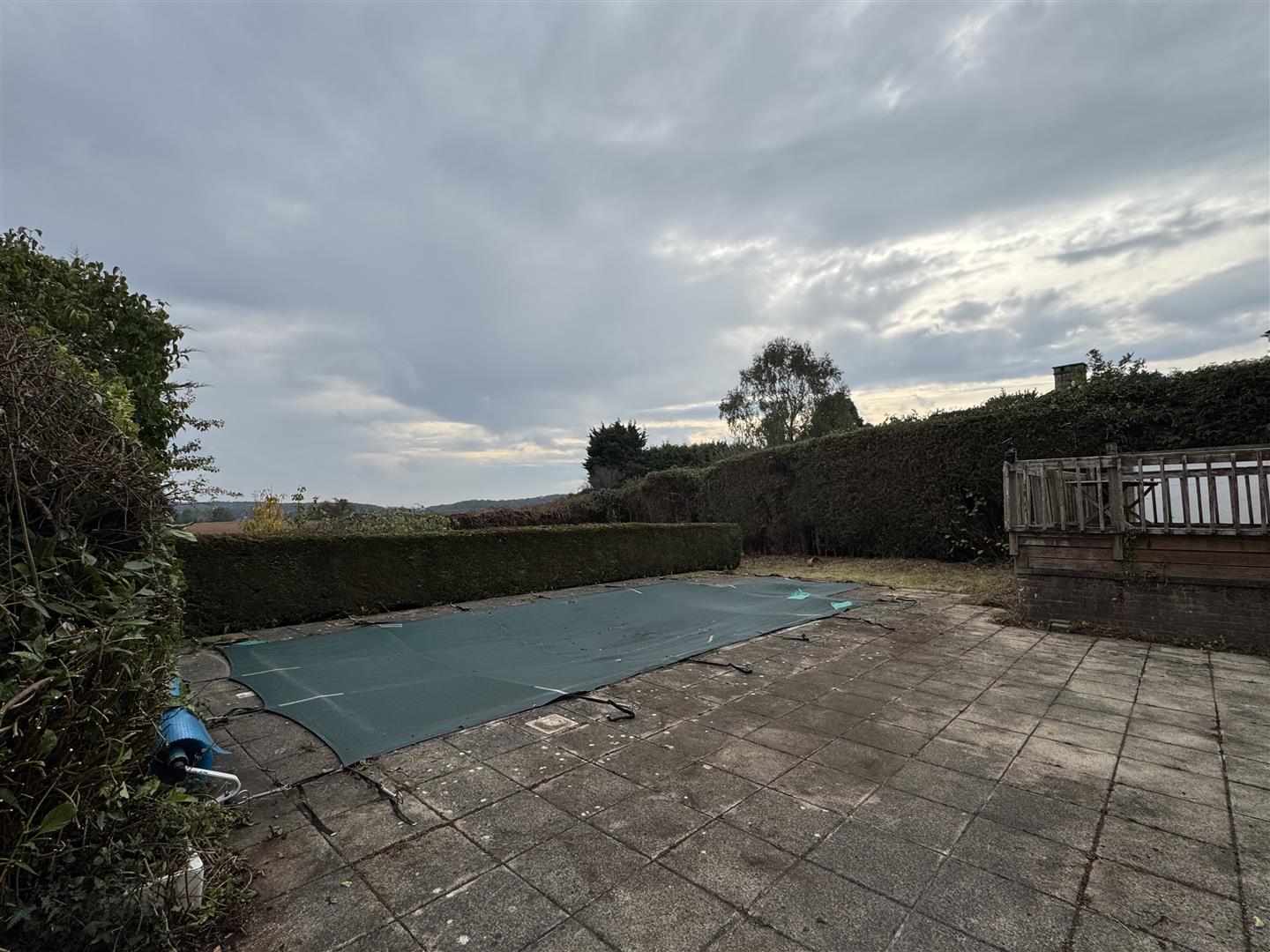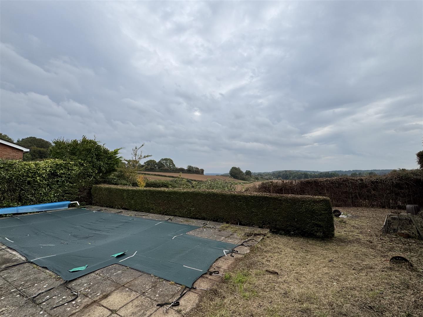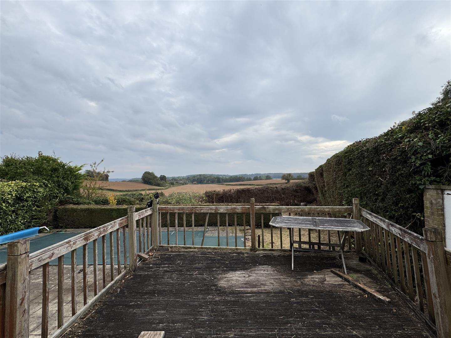 To the front of the property is a well-maintained lawn with established, stocked borders, creating a welcoming first impression. The rear garden offers a generous full-width paved seating area, perfect for outdoor dining, along with a raised decked terrace that enjoys beautiful open countryside views. There is a swimming pool which requires refurbishment to bring it back into use, or alternatively, it could be removed or covered to create additional outdoor living space. The rest of the garden backs directly onto open countryside and is bordered by a combination of mature hedging and fencing, offering both privacy and a picturesque outlook.