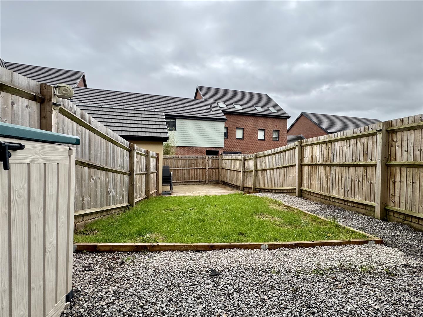 The rear garden benefits from an outside tap and sensor security lighting. There is a full width seatting area for alfresco dining during the warmer months and well maintained lawn. As previously mentioned, there is a concrete base ready for home offie/gym/studio etc. Fence to boundary and gate and footpath to the side elevation giving access to the front of the property.