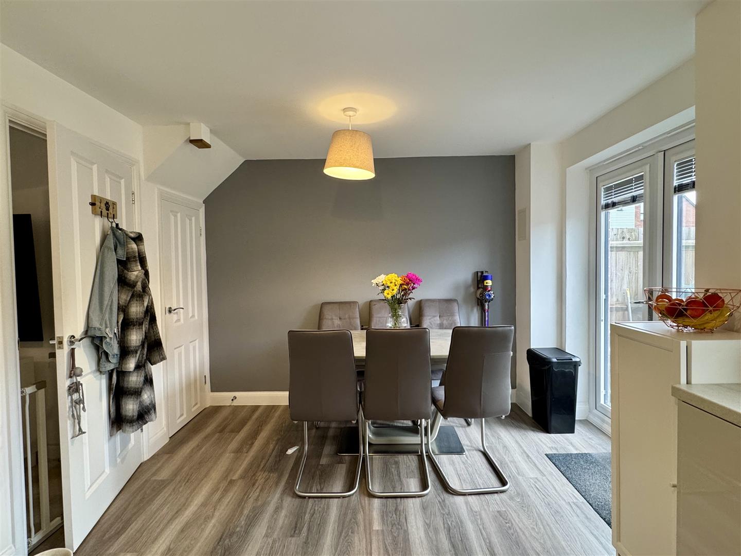 Panelled radiator. UPVC double glazed windows to front and side elevations. Door kitchen dining room.