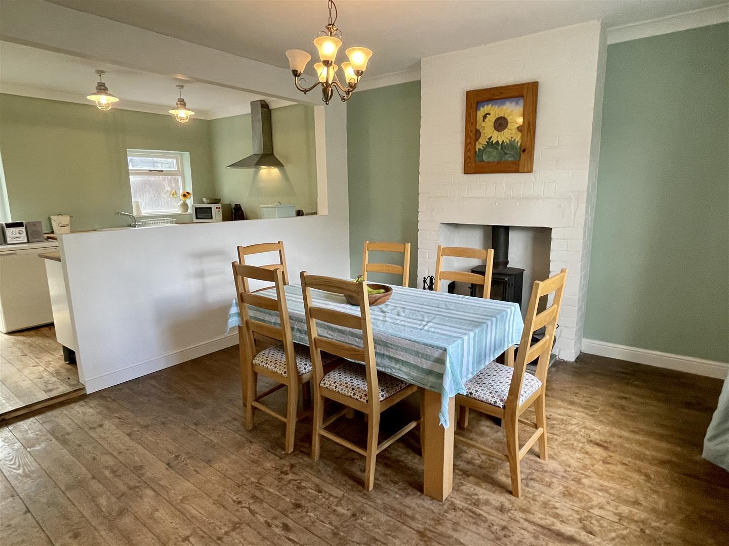 Coved and plain ceiling. Painted brick chimney breast with wrought iron multi fuel burner. Exposed wooden floor boards. Panelled radiator. Window to front elevation. Door to inner hallway. Open to kitchen.