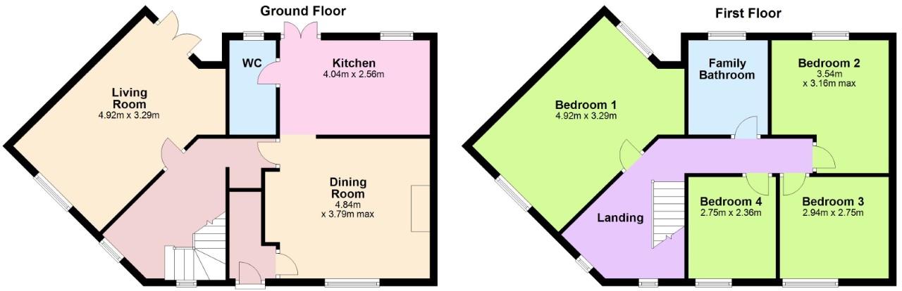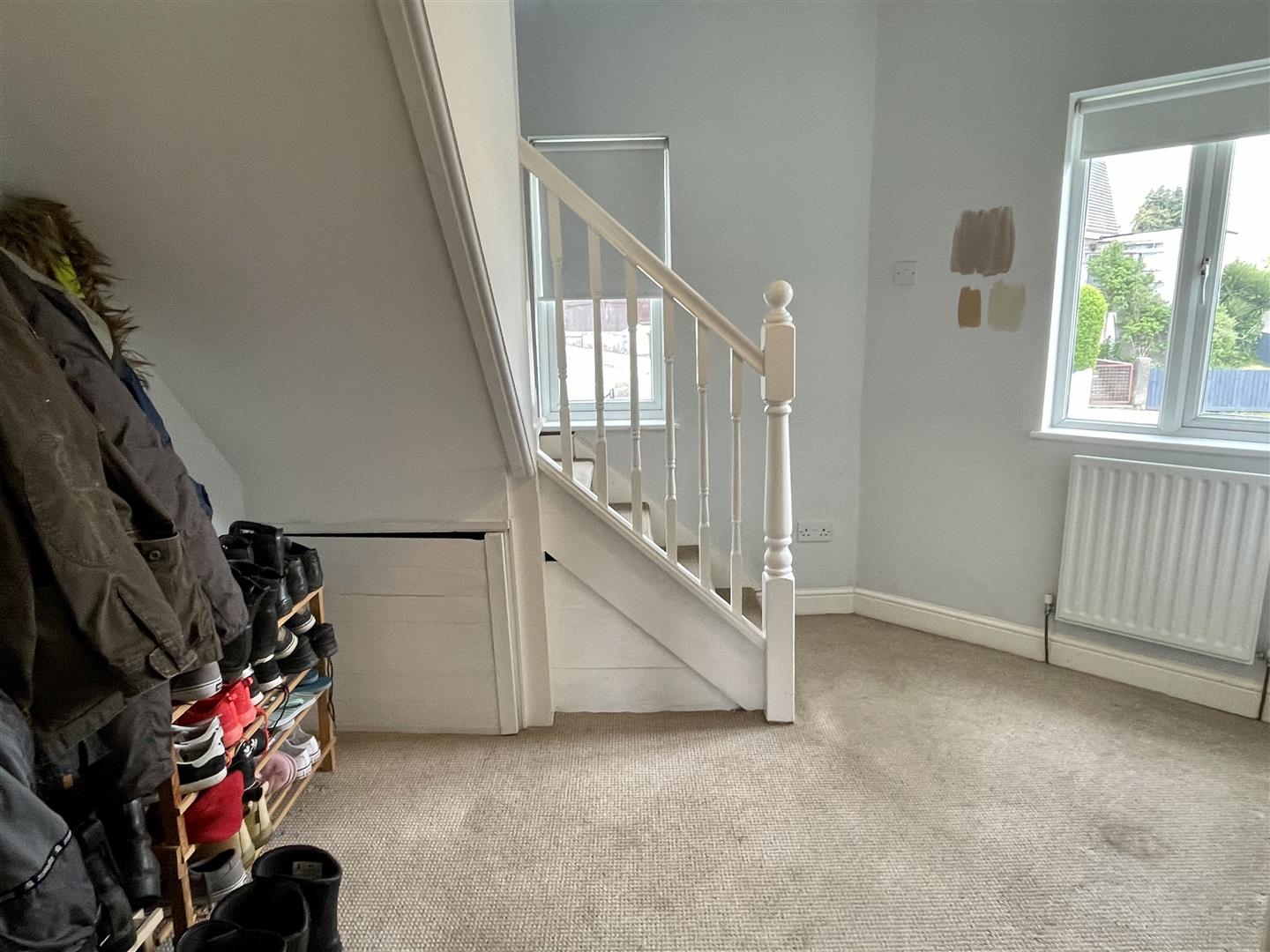 Under stairs storage. Panelled radiator Two uPVC double glazed windows to front elevation. Stairs with half landing to first floor. Door to living room.