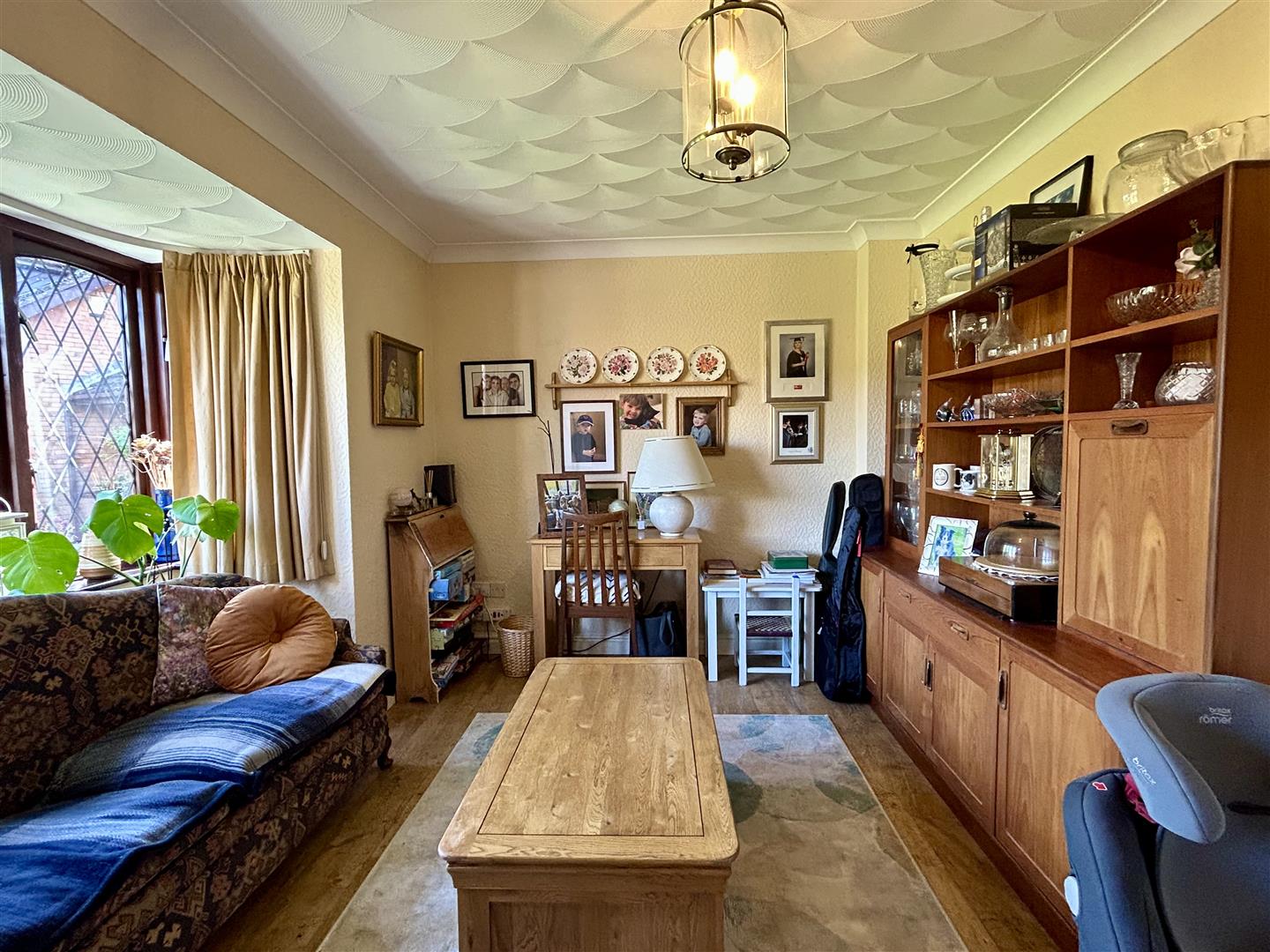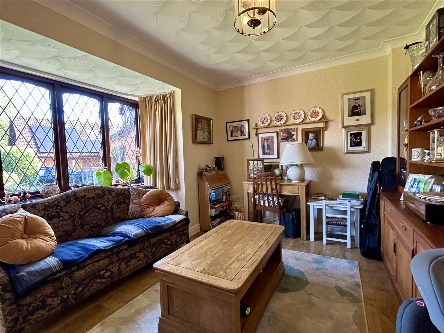 Coving. Wood effect flooring. Useful cloaks cupboard. Panelled radiator. Double glazed bay window to front elevation.