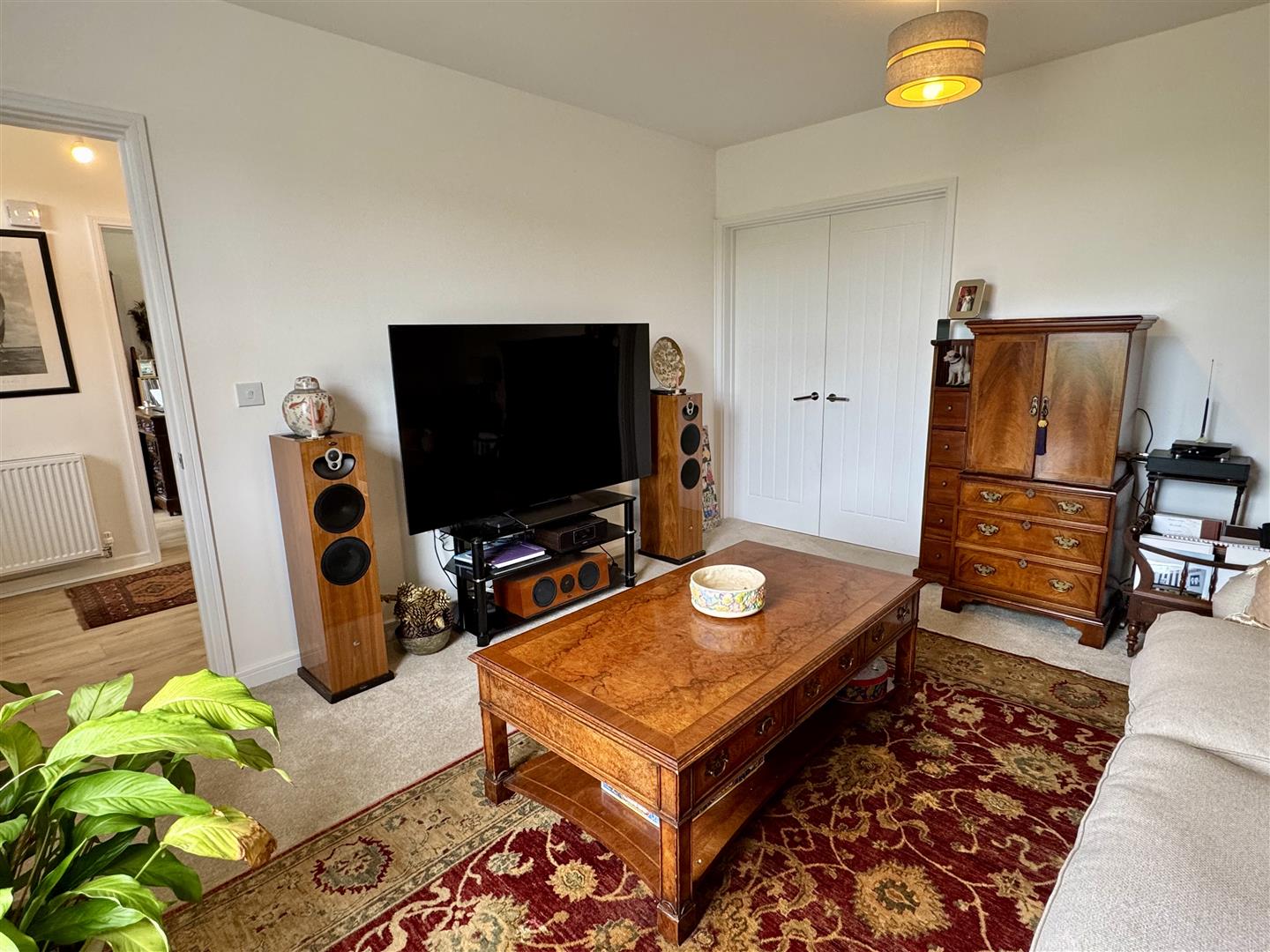 Panelled radiator. Good quality wood effect flooring. UPVC double glazed window to front elevation.